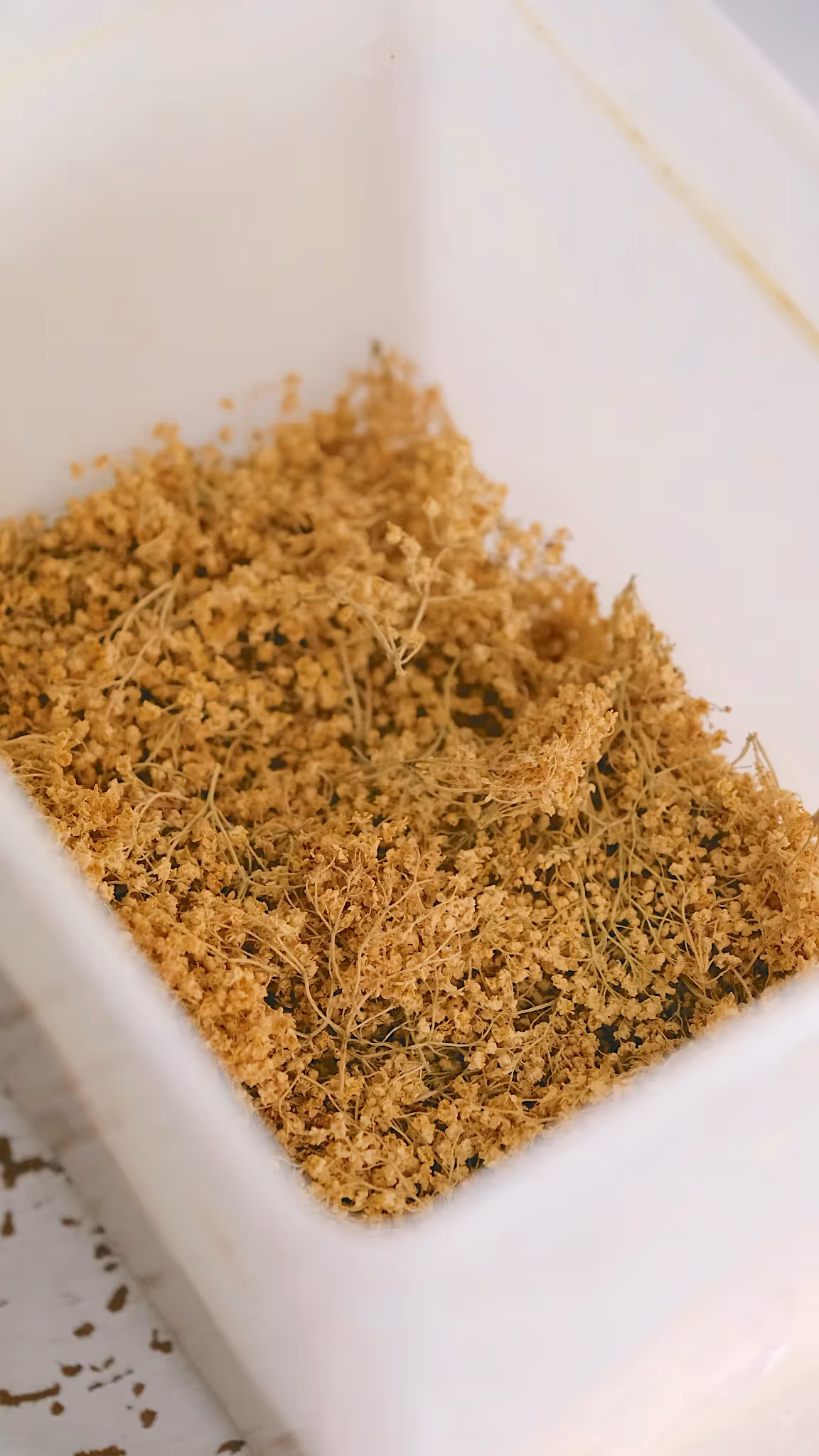 C'est l'étape la plus importante : nous infusons nos fleurs et nos plantes dans de grands sacs, comme un thé… mais en version XXL. Tout cela est fait à froid, pendant 24 heures, pour préserver tous les arômes.